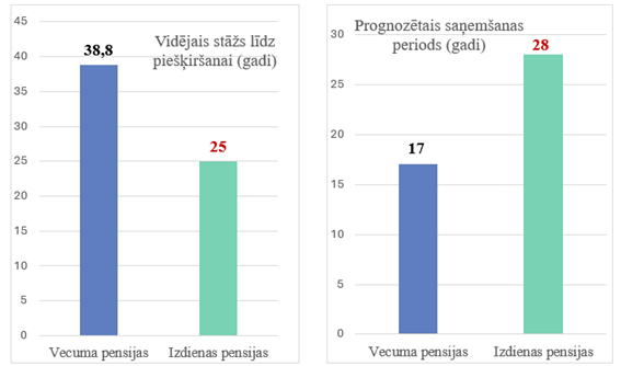 Par vidējo stāžu līdz pensijas saņemšanai, prognozēto pensijas saņemšanas periodu