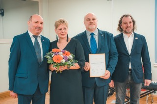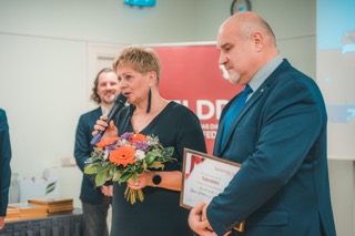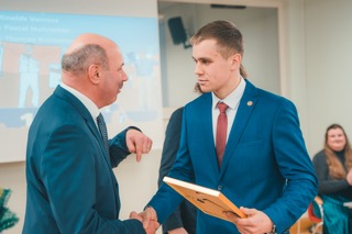 A. Bite un A. Laurinovičs sveica Rinaldu Vanteru un teica paldies viņa vecākiem Sandrai Grīnliņai un Ilgonim Vanteram par sniegto atbalstu Rinaldam profesijas izvēlē un profesionālajā pilnveidē.