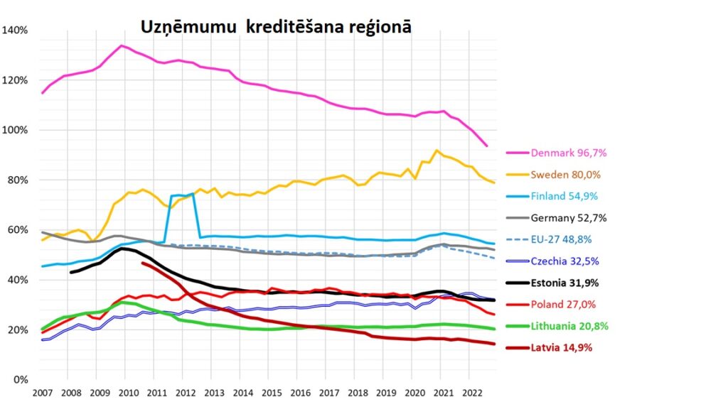 LDDK prezidents Andris Bite un LDDK finanšu un nodokļu eksperts Jānis Hermanis sniedza pārskatu par finanšu pieejamību tautsaimniecības attīstībai, norādot, ka uzņēmumu kreditēšanas apjoms pēdējos gados ir bijis krītošs vai stagnējošs, un Latvijā uzņēmumu kredītu apjoms procentuāli pret IKP pēdējos gados ir pakāpeniski, bet stabili samazinājies. Savukārt kaimiņvalstīs un reģiona kaimiņvalstīs kredītu apjoms pret IKP ir stabils vai pieaugošs, jo princips ir vienkāršs – jo attīstītāka valsts, jo augstāku kredītu slodzi var atļauties tās uzņēmumi.