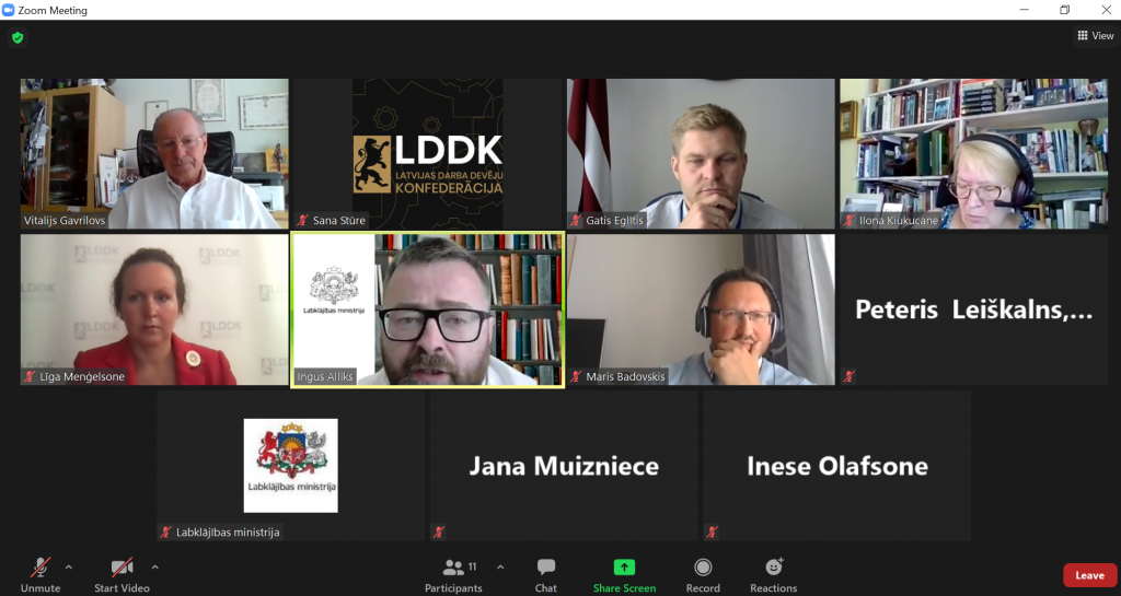 Tikšanās laikā puses pārrunāja vairākus darba devējiem svarīgus risināmos jautājumus saistībā ar gan ar Covid-19 izplatības seku pārvarēšanu, gan darba tiesisko attiecību un nodarbinātības tiesisko regulējumu, darba drošību un drošu darba vidi, kā arī par nozaru koplīgumiem un minimālās algas noteikšanas mehānismu Latvijā un Eiropas Savienībā. LDDK uzsvēra, ka minimālās algas jautājums jāskata nozaru un profesiju griezumā.