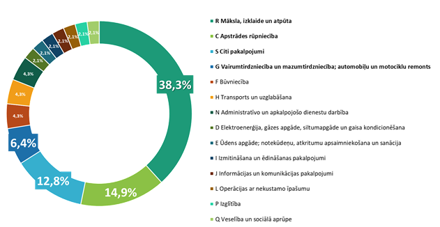 Aptaujā piedalījās 47 uzņēmumi, no kuriem 38% pārstāv mākslas, izklaides un atpūtas jomu, 14,9% apstrādes rūpniecību, 12,8% citus pakalpojumus, 6,4% vairumtirdzniecību un mazumtirdzniecību, kā arī mazākā apmērā aptaujā piedalījās uzņēmumi no citām nozarēm.
